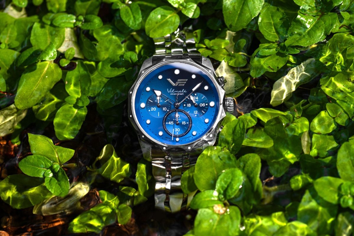 30 minútový chronograf (centrálna sekundová ručička chronografu a bočná minútová ručička chronografu v polohe 9 hod)