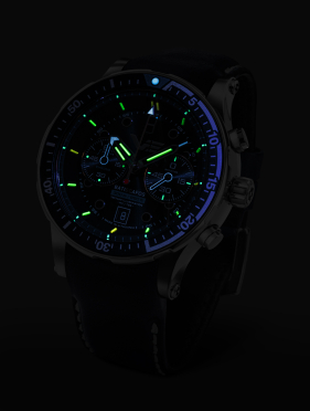 - osvetlenie ciferníka: trícium (16 tríciových kapsúl švajčiarskej výroby: 13 ks na indexoch, 2 ks na hodinovej a 1 ks na minútovej ručičke) a Super Luminova