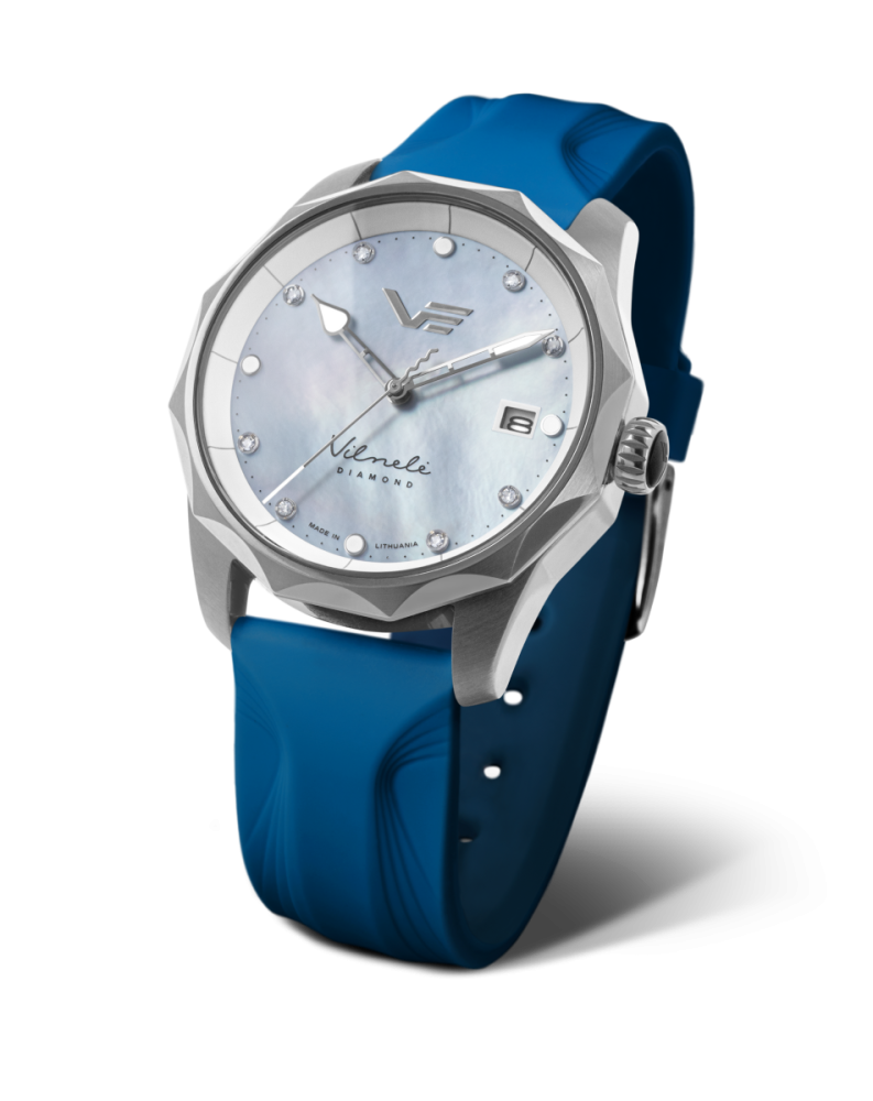 polopriehľadný perleťový ciferník s 8 pravými diamantmi